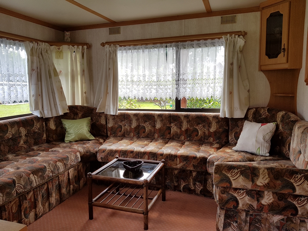 Domek holenderki, 5-osobowy z dwiema sypialniami, salonem z narożnikiem, jadalnią i aneksem kuchennym.